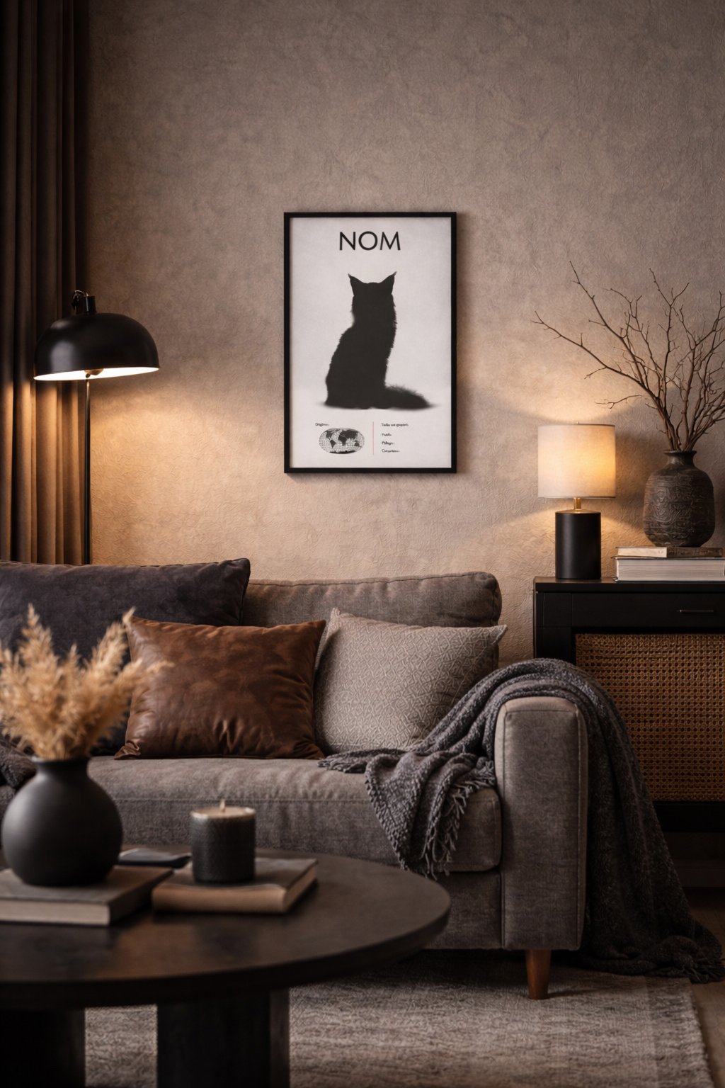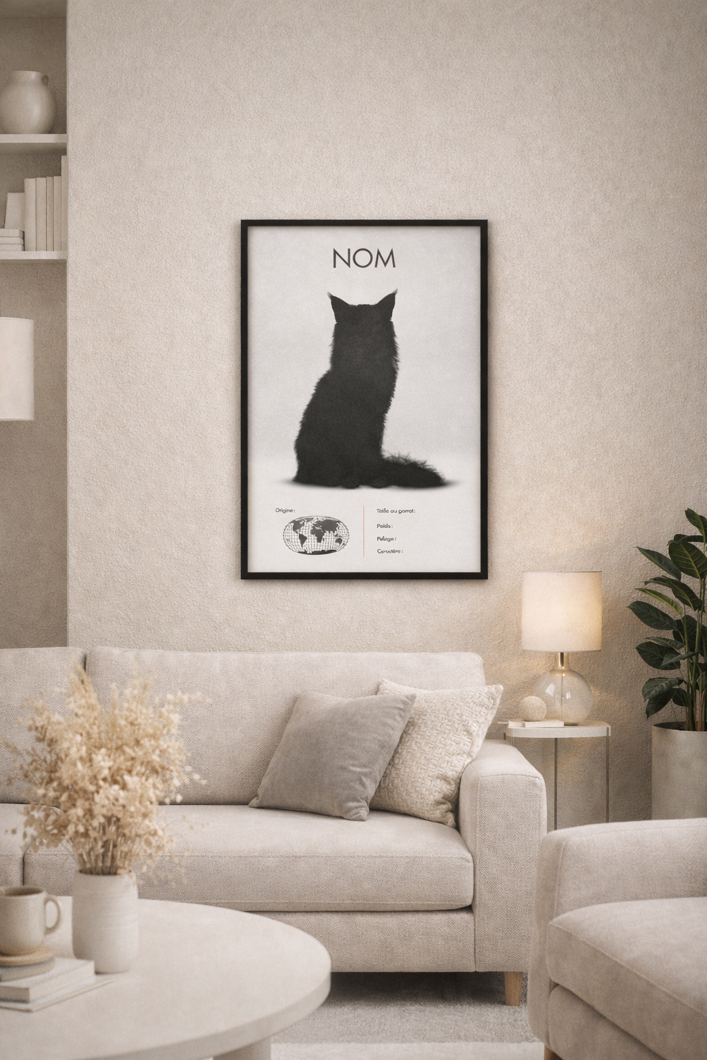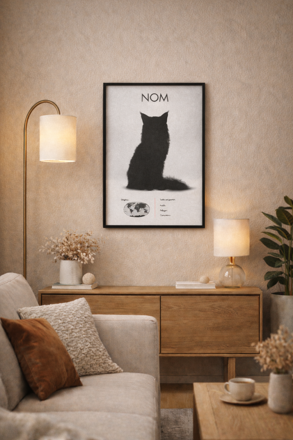 Créez et mettez en valeur votre décor intérieur avec une œuvre qui vous est chère. Design, beauté et élégance sont nos maîtres-mots. Nos tableaux personnalisés ne se contentent pas d’embellir vos murs, ils racontent une histoire unique qui reflète la connexion que vous avez avec votre félin.